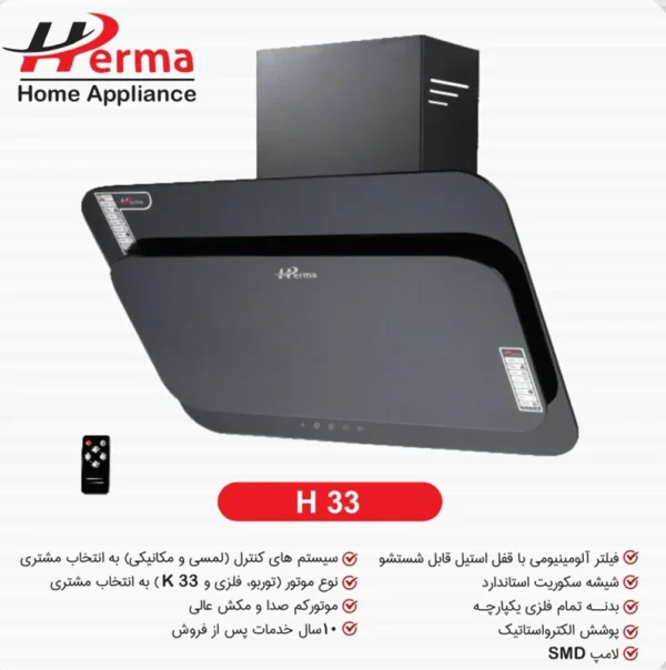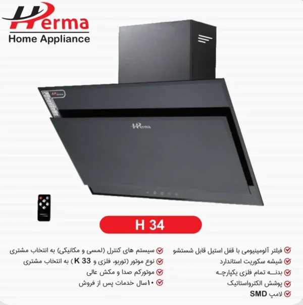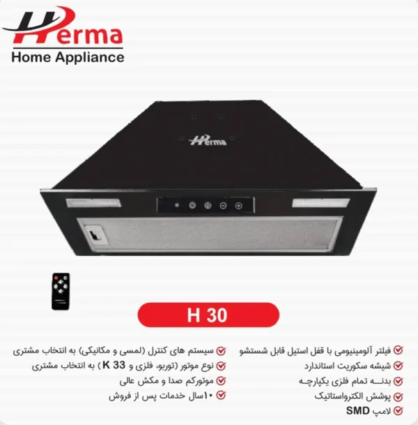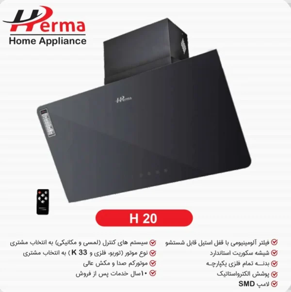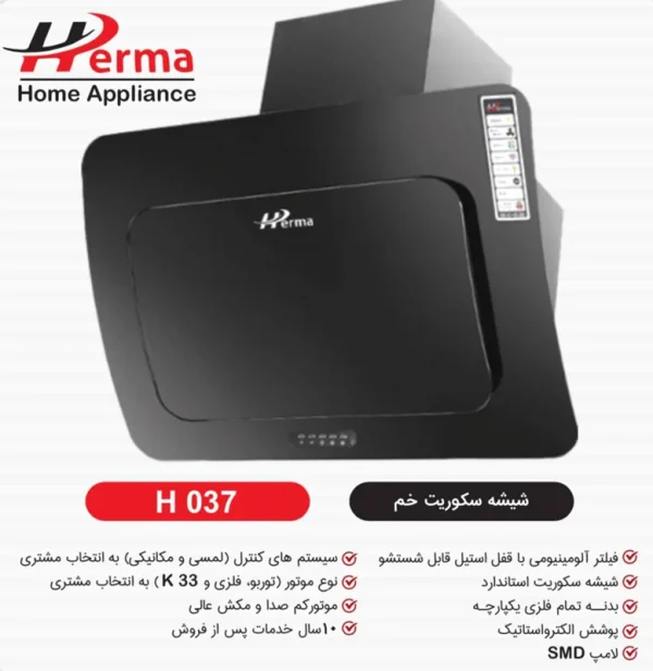 مشخصات ، خرید و قیمت هود هرما مدل تک شیشه دو گوشه